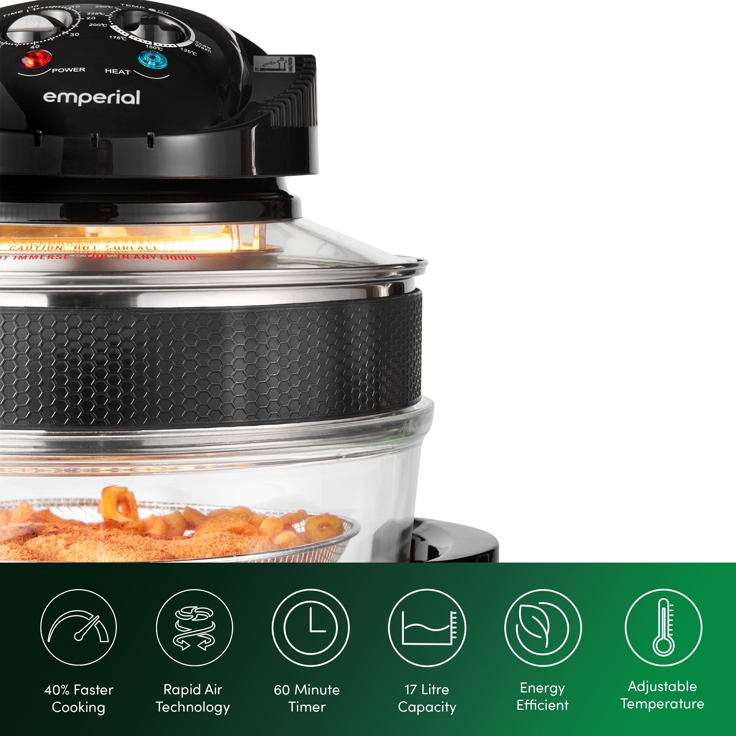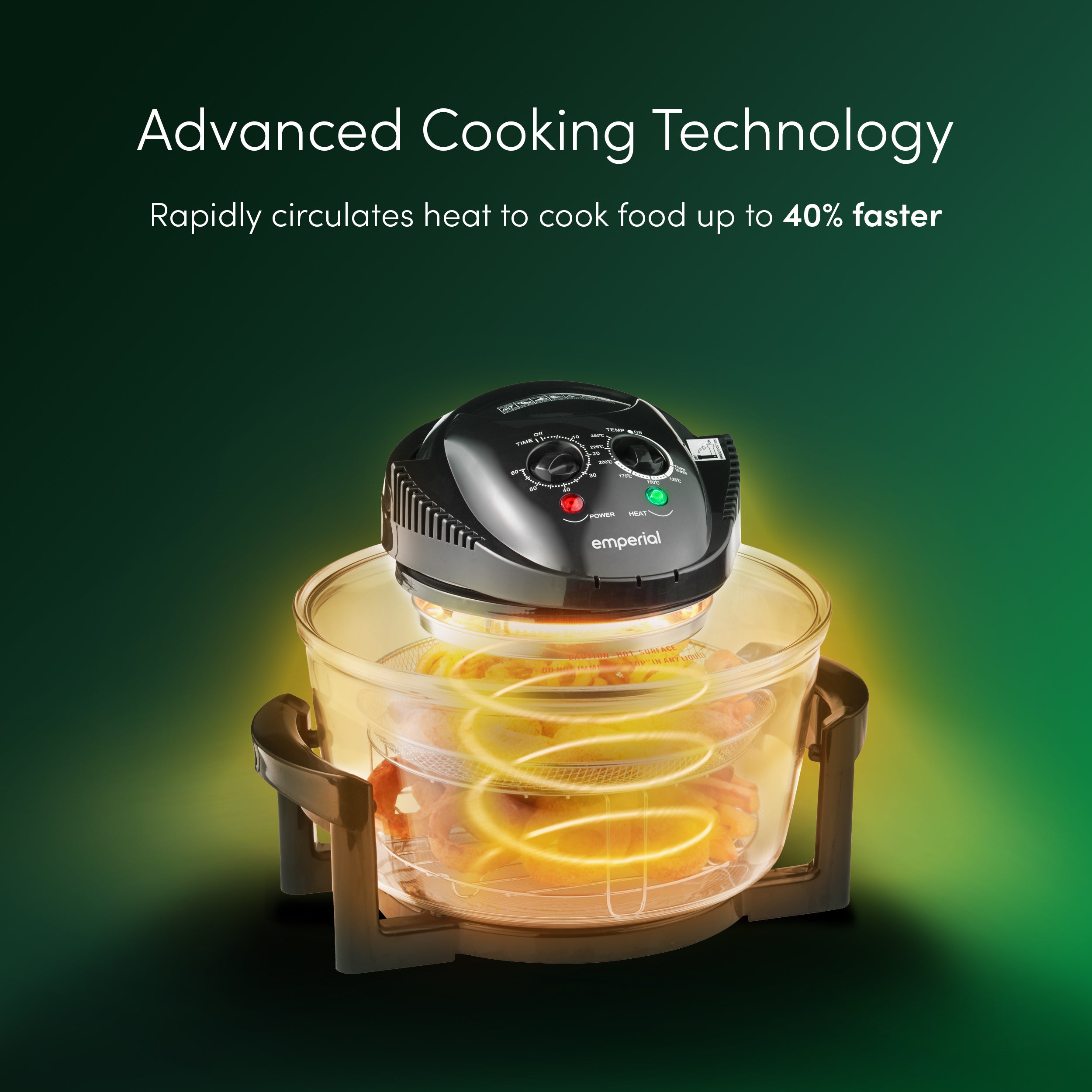 - Accessories Included - Make the most of your halogen oven with the included Low Rack, High Rack, Extender Ring, Mesh Tray, Rice Pot & Tongs.