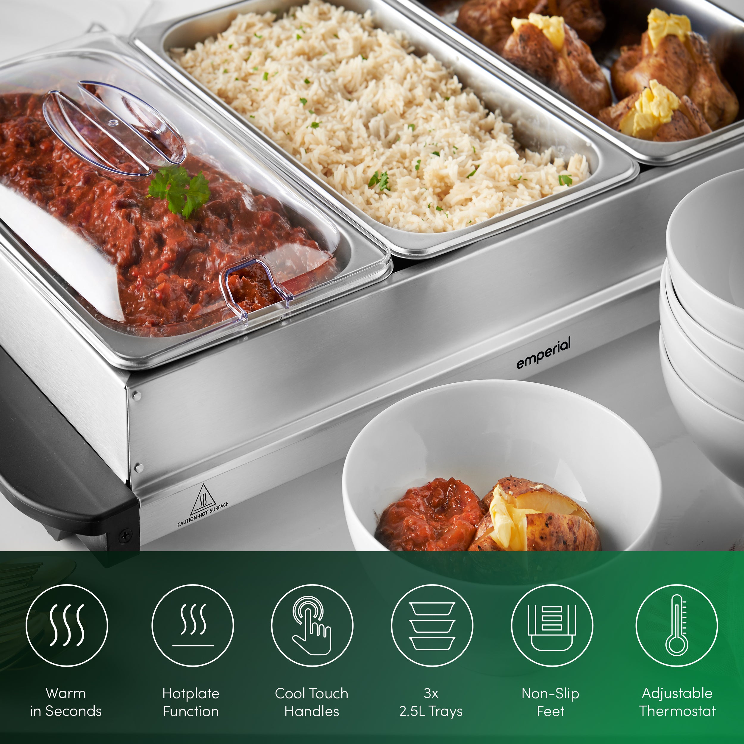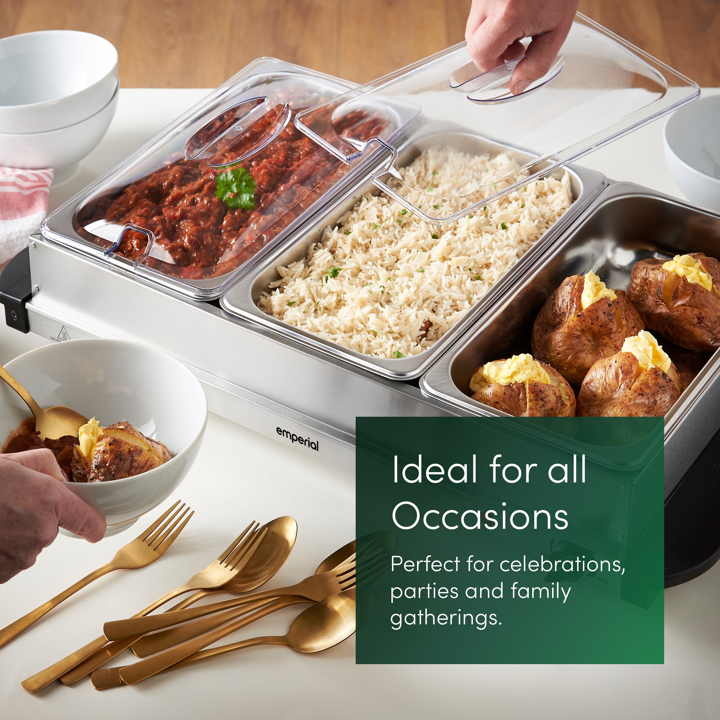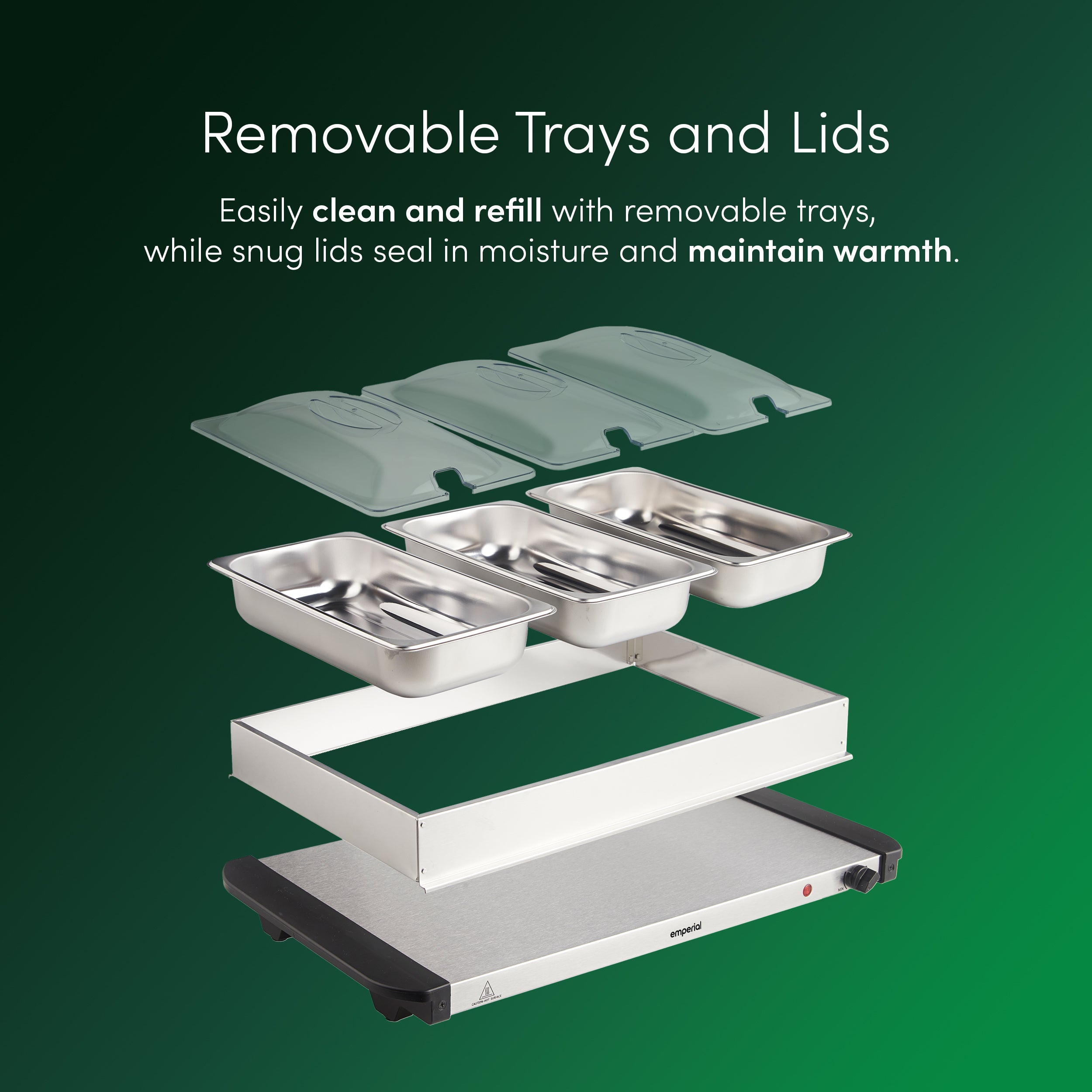 - Multifunctional - By removing the outer trays, the food buffet warmer can be used as a hot plate to place plates, bowls and gravy boats to keep them warm at all times