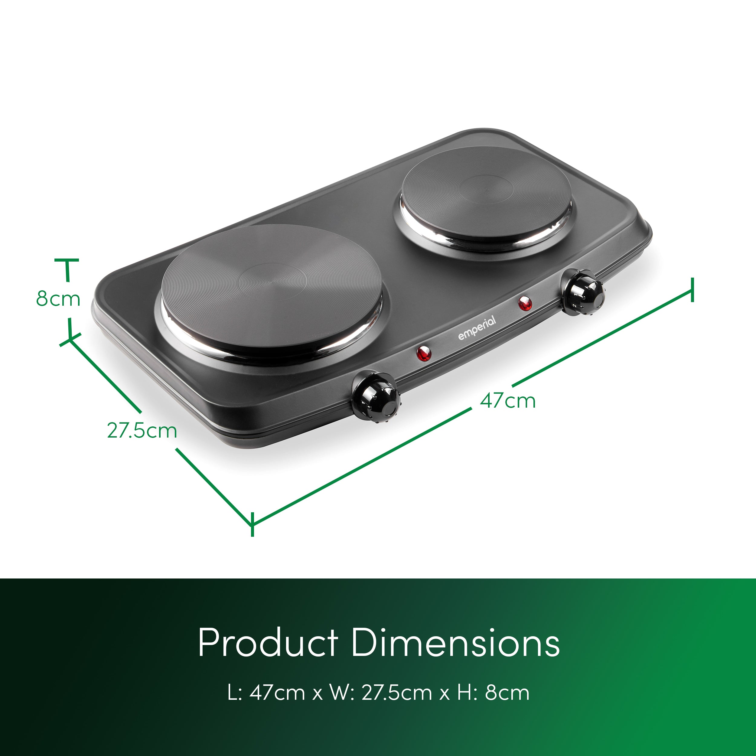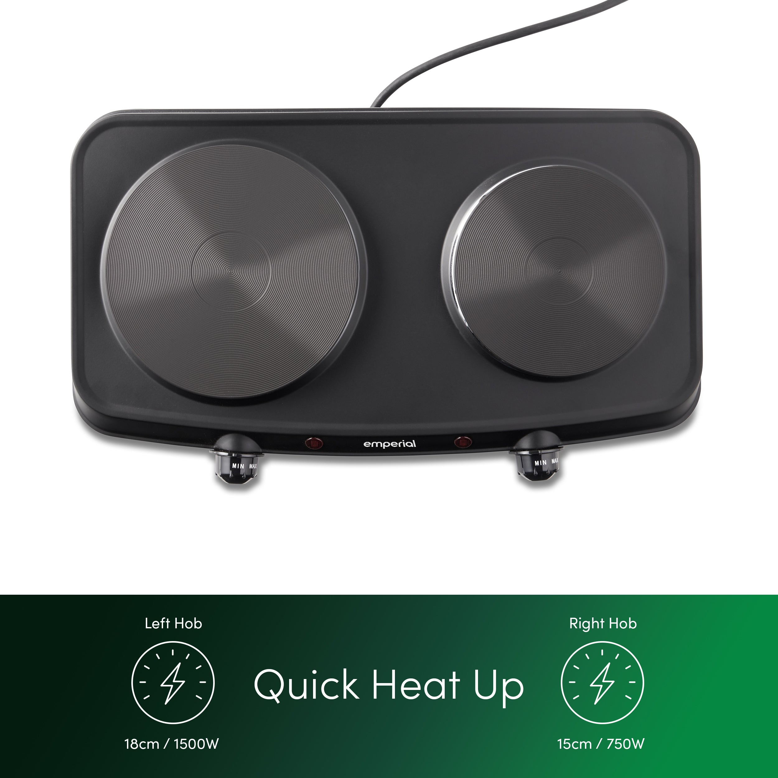 - Compact & Portable - Slim lightweight design that features a large 1500W plate and small 750W plate that is perfect for small kitchen spaces, student accommodation, caravans and camping trips.