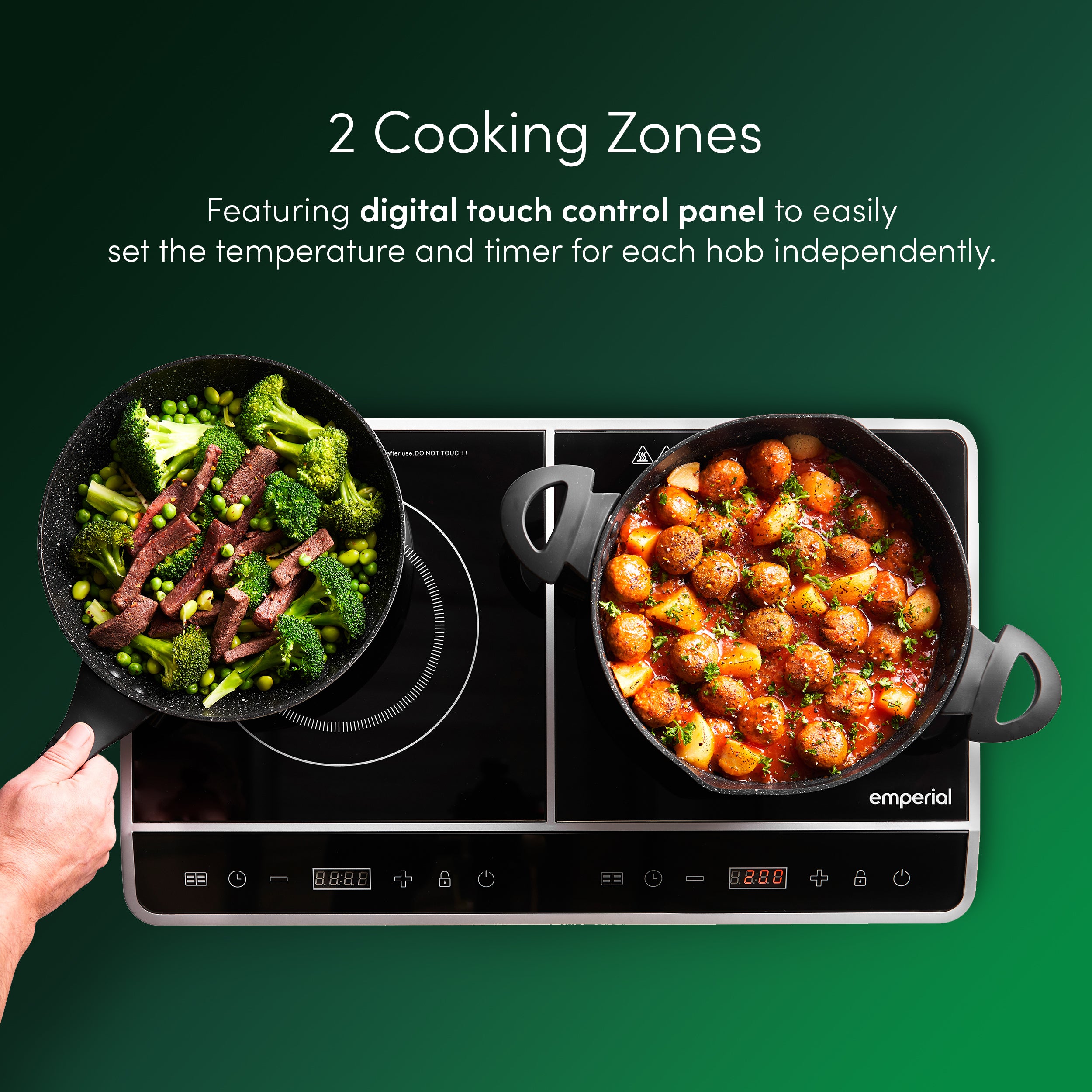 - Fast & Easy Cooking - A perfectly alternative to gas hobs, the twin induction hob heats the whole pan rather than just the surface for effective results. Get into chef zone with the easy to use controls featuring lock mode and over heat protection for peace of mind when cooking.