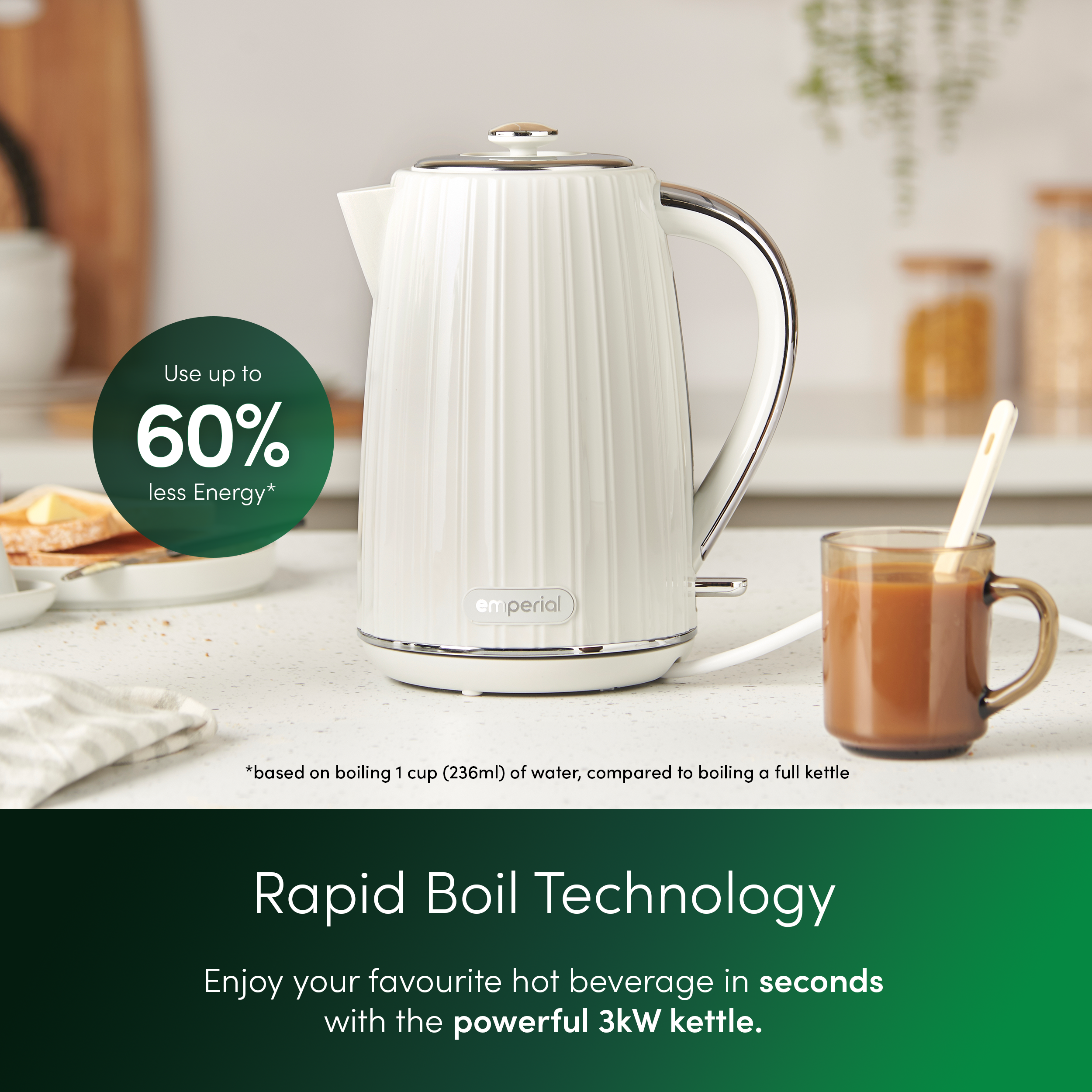 - Rapid Boil & Safe - A powerful 3kW concealed element boils water quickly, one cup in under a minute, ideal for busy mornings. Built-in boil-dry protection ensures safe, reliable use every day.
