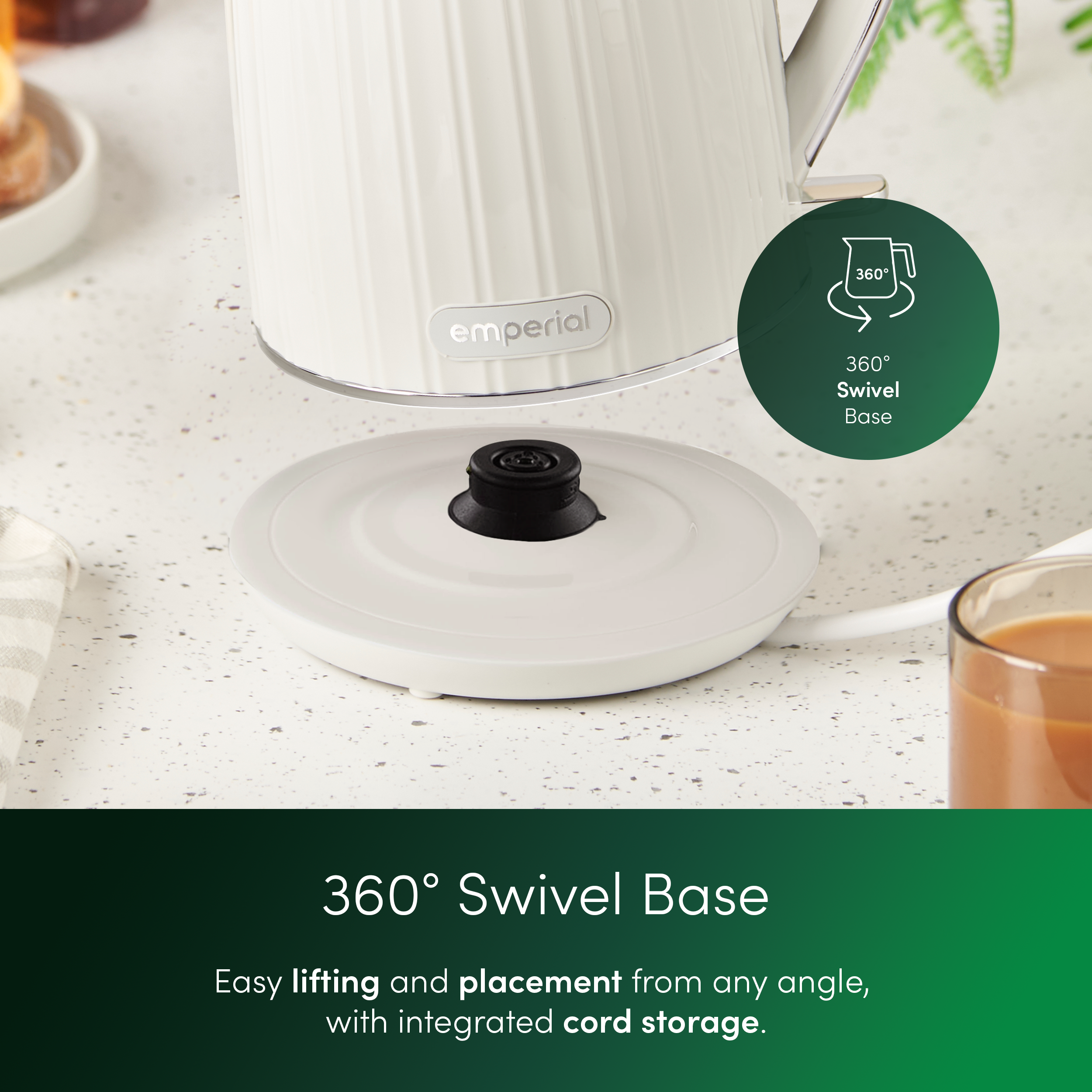 - Convenient 360° Swivel Base - The fully rotating base with built-in cord storage keeps counters tidy. Easy to lift, pour and return from any angle, ideal for left or right-handed use.