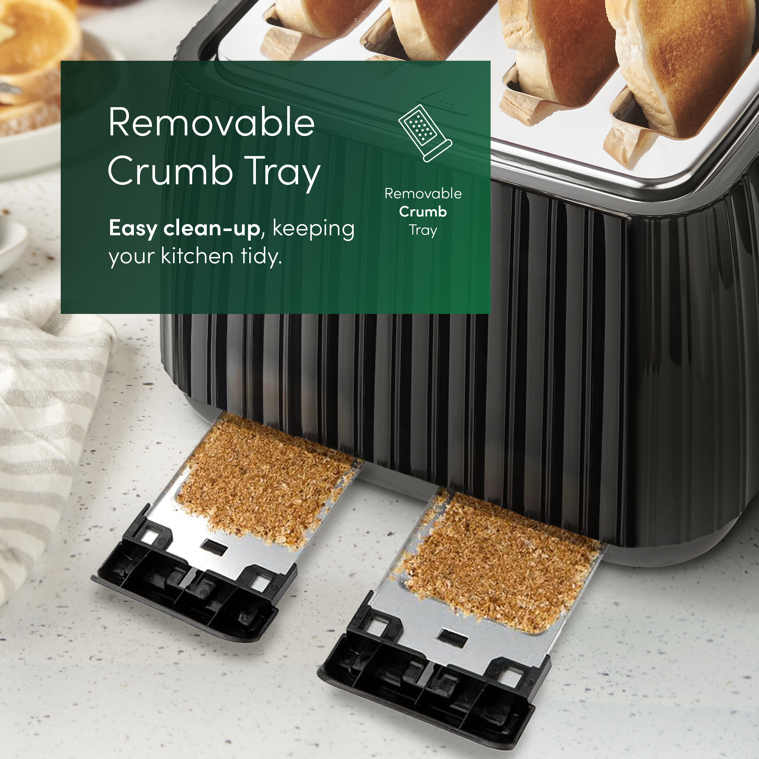 - Rapid 4-Slice Toasting - With 1600W of power, this toaster delivers fast, even results with independent controls for 2 or 4 slices. The variable-width slots handle everything from thin bread to thick-cut slices, bagels and crumpets; ideal for families and busy mornings.