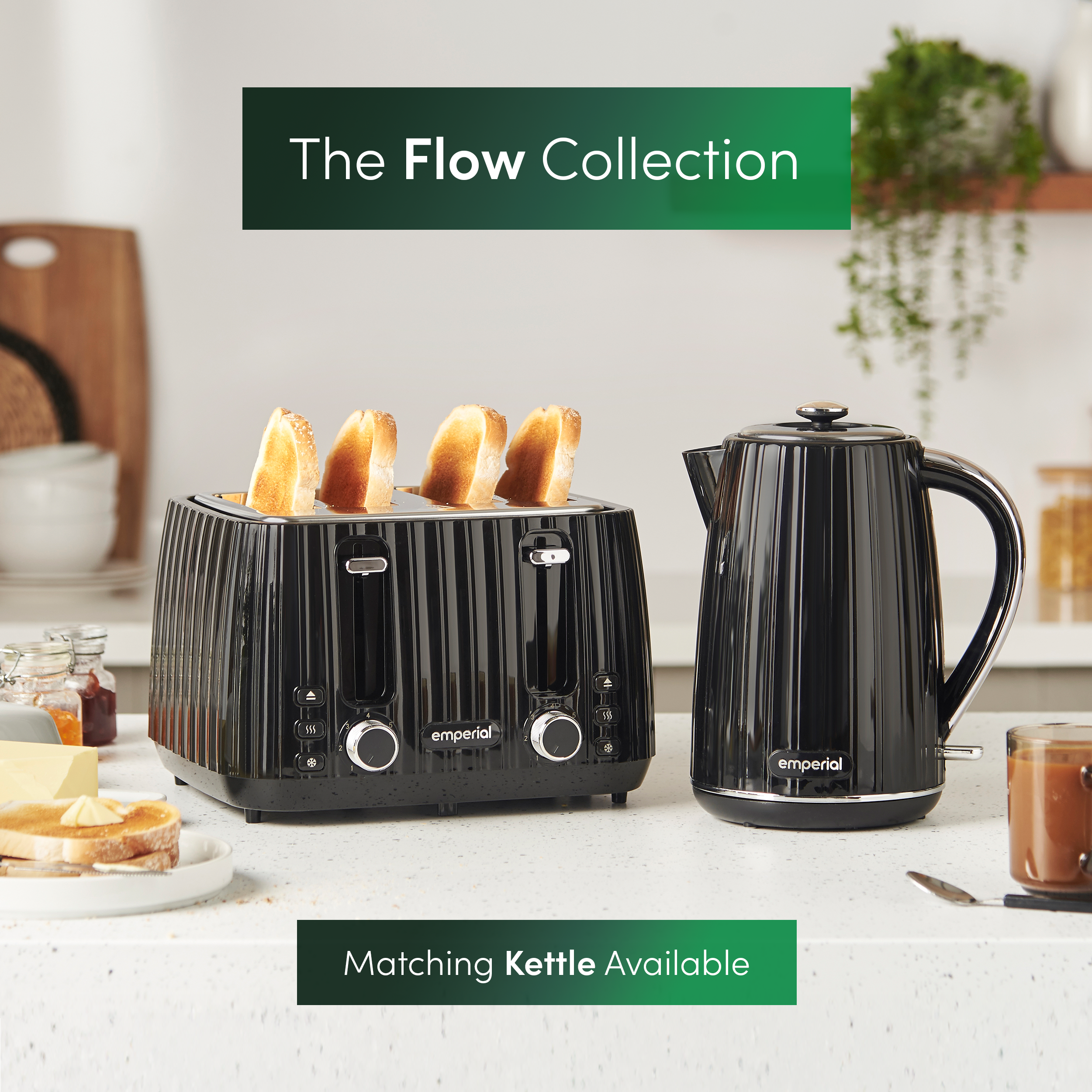 - Flow Collection - Featuring a sleek high-gloss textured finish, chrome accents and illuminated controls, this toaster is part of the elegant Flow Collection. Pair it with the matching kettle for a beautifully coordinated kitchen set.
