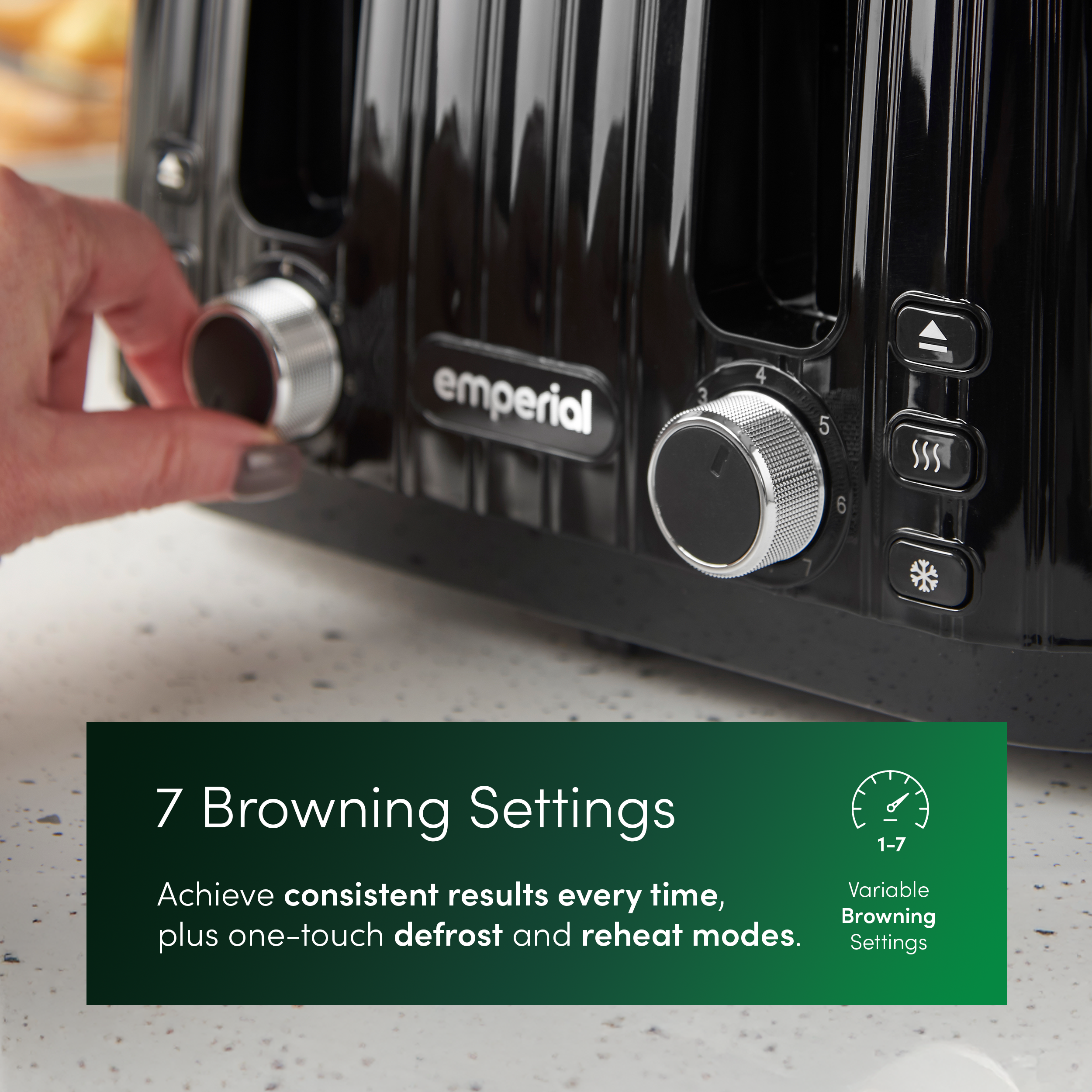- 7 Browning Levels - Choose from 7 precise browning settings to get your toast just the way you like it, from lightly golden to deep and crispy.