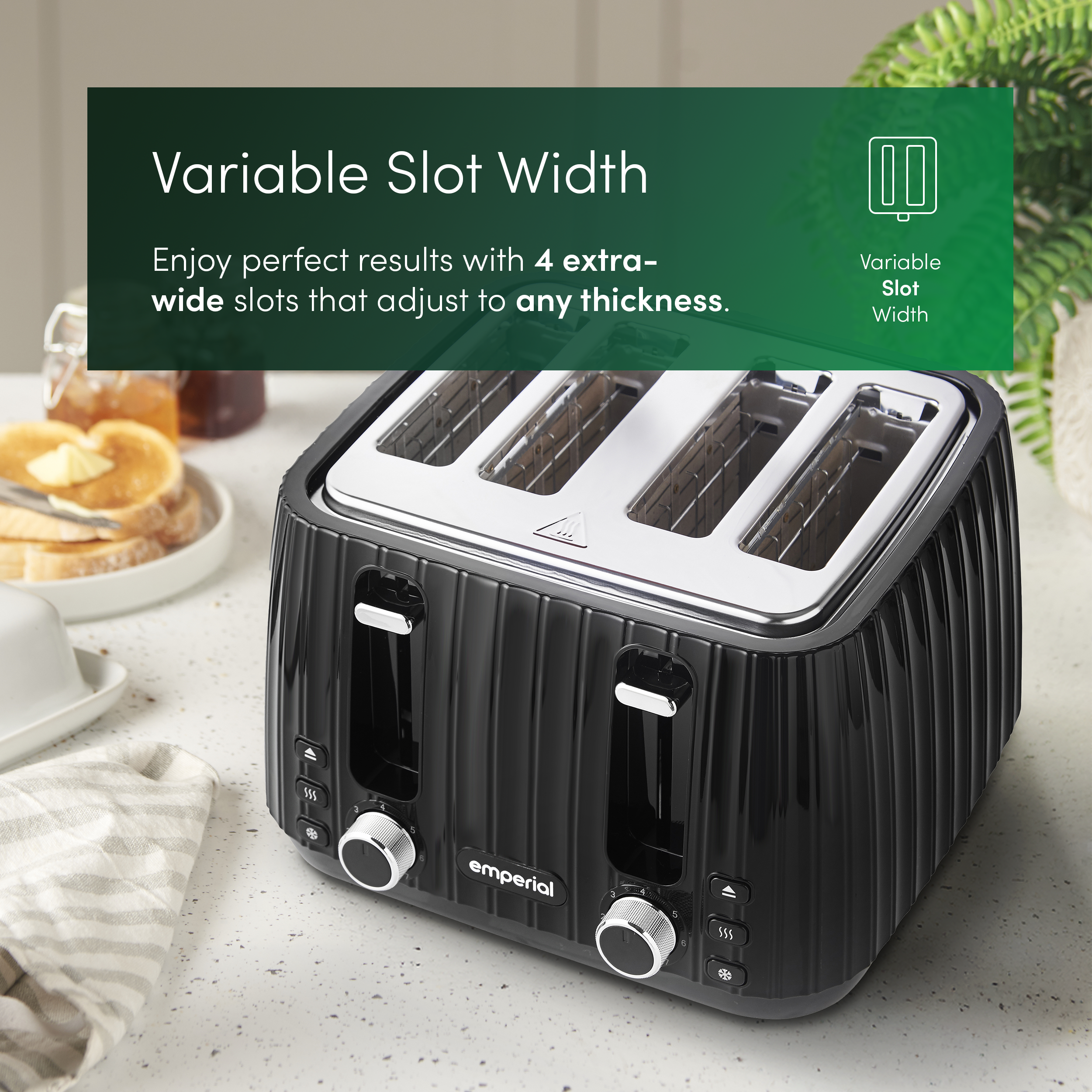 - Precision & Flexibility - With 7 browning levels, plus defrost, reheat and cancel functions, you have full control to get your toast just right. The kettle’s easy-view water window helps you boil only what you need, saving energy and reducing waste.