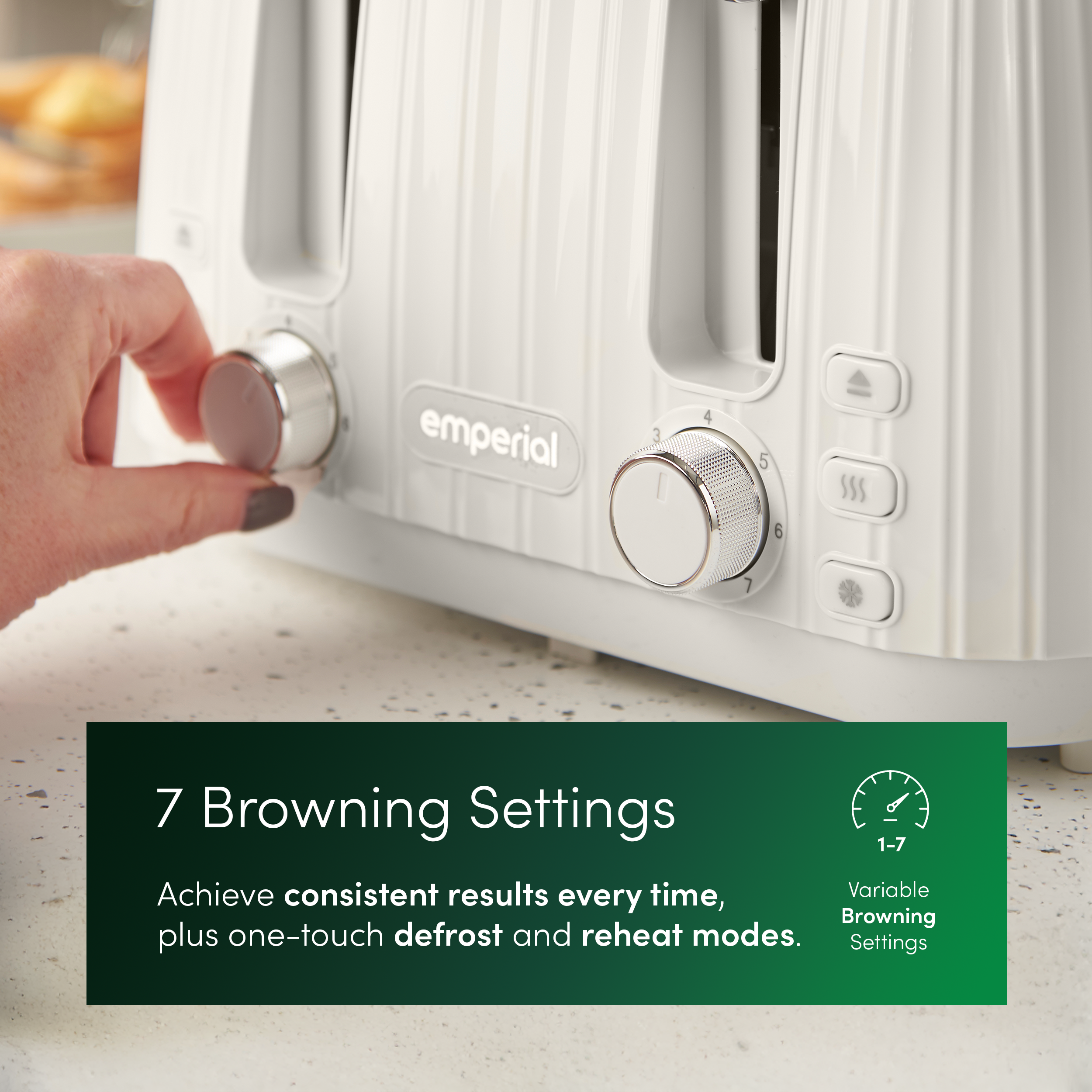 - Precision & flexibility - With 7 browning levels, plus defrost, reheat and cancel functions, you have full control to get your toast just right. The kettle’s easy-view water window helps you boil only what you need, saving energy and reducing waste.