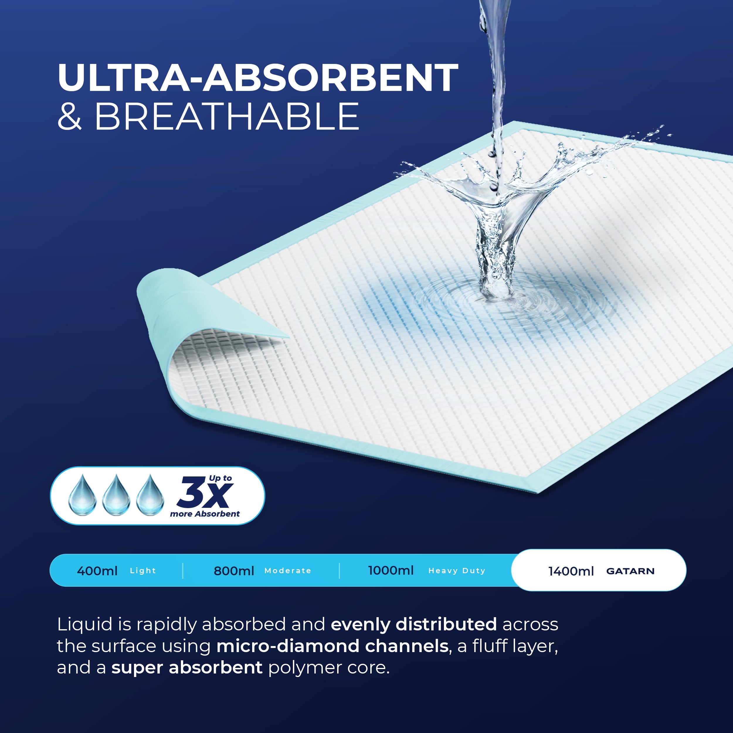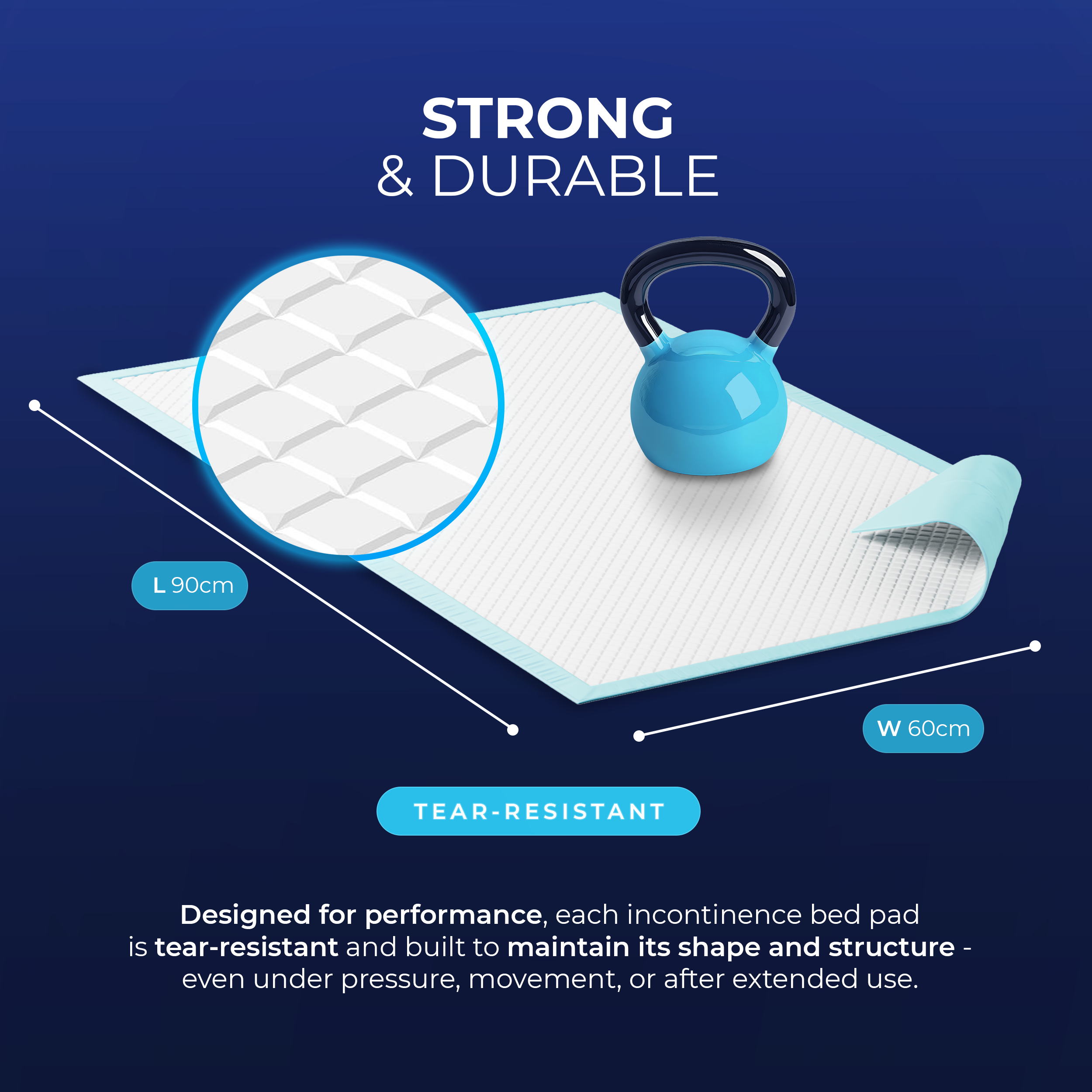- Fast & Even Liquid Absorption: Engineered with advanced micro-diamond channel technology, our premium 90cm x 60cm incontinence bed pads quickly wick moisture across the entire surface to prevent pooling. Perfect for overnight protection, promoting dry comfort and skin health.
