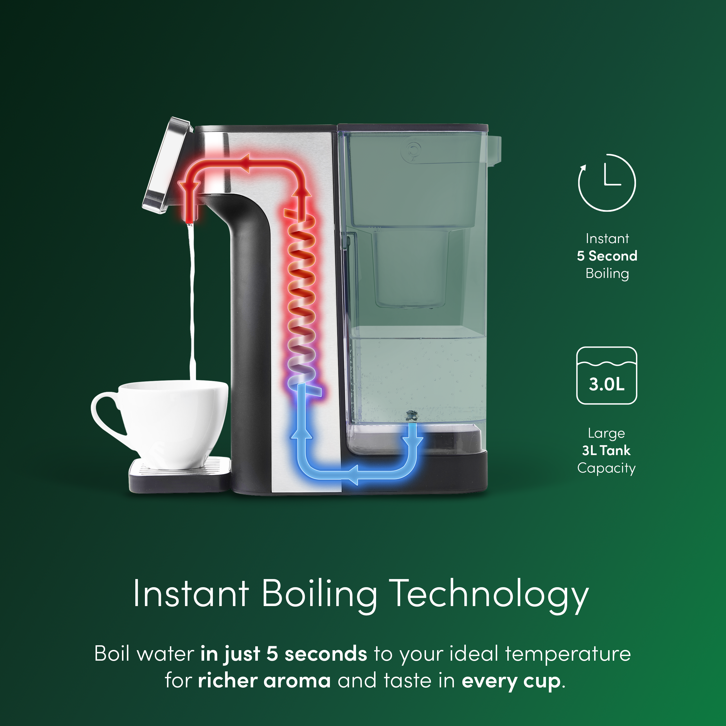 Hot Water in Seconds - Boil water in just 5 seconds with advanced instant-heating technology, using up to 60% less energy than standard kettles. With precise temperature and volume controls, you only heat what you need. No waste, just the perfect amount for tea, coffee, cooking and more.