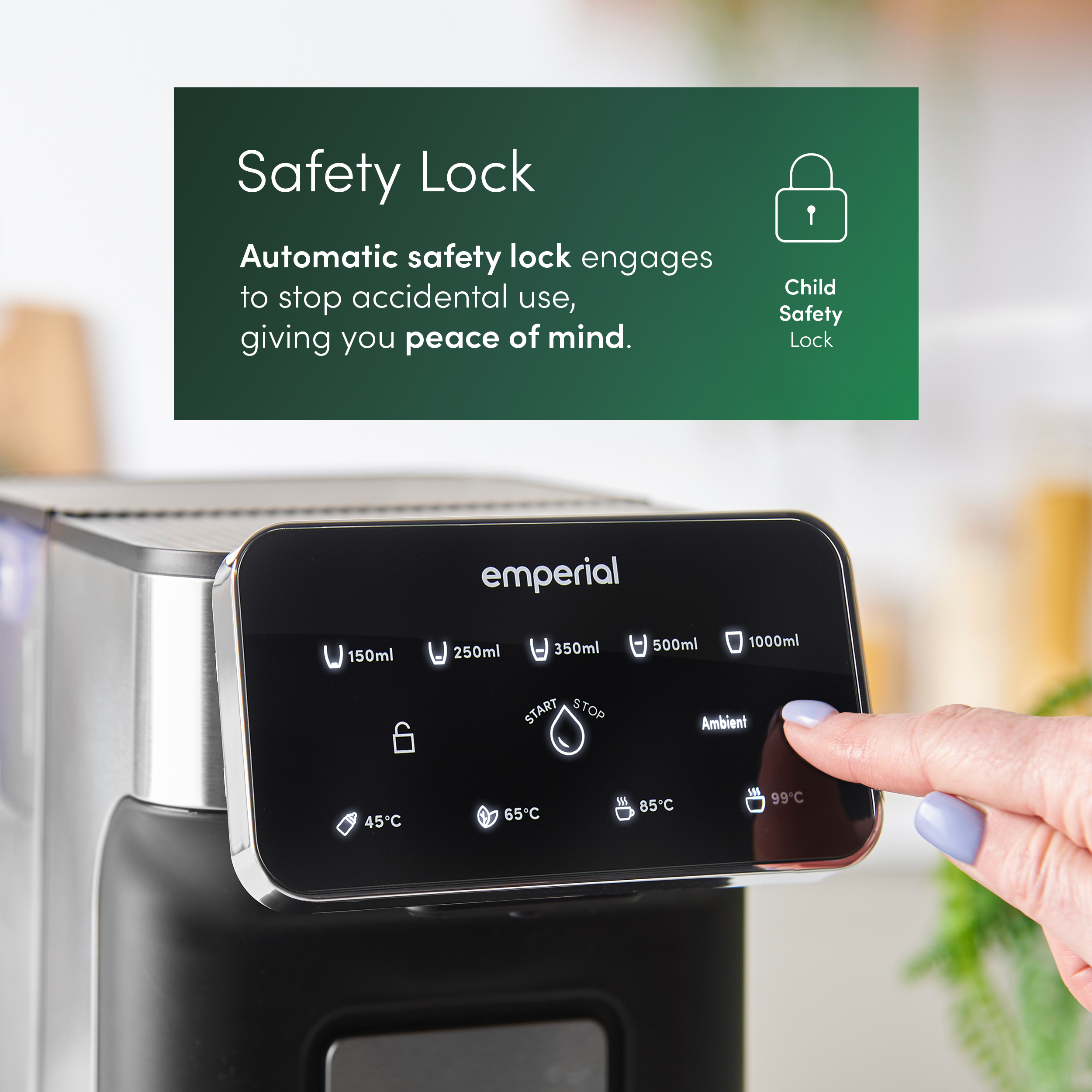 4 Pre-set Temperatures + Ambient - Choose from 45°C, 65°C, 85°C, 100°C or Ambient to suit everything from cool drinks to boiling water. Perfect for tea, baby formula, cooking, sterilising and more, always at the right temperature.
