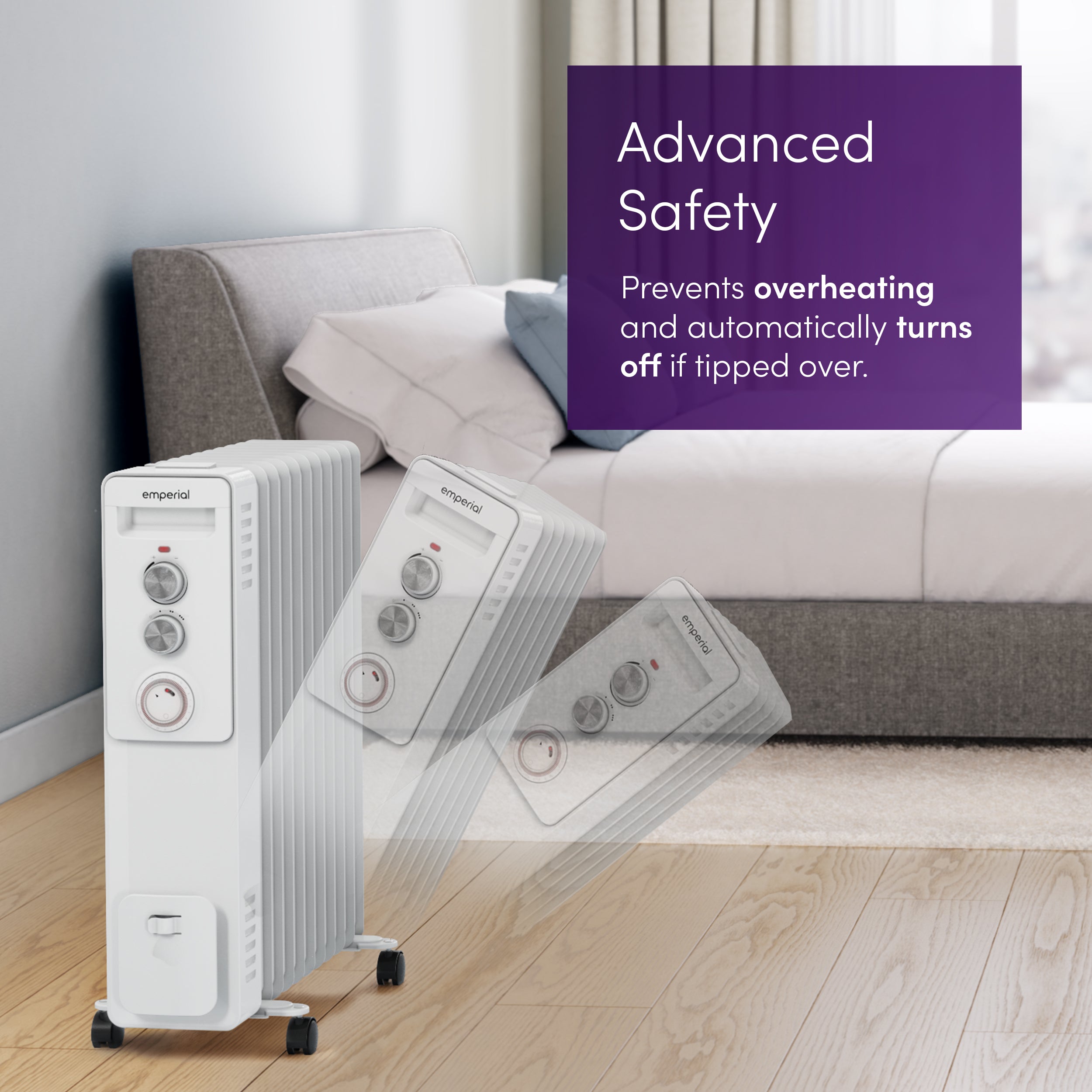 - Advanced Safety Features - Built-in overheat protection, safety tip-over switch and automatic thermal shut off will ensure the radiator automatically switches off in any unsafe situation.