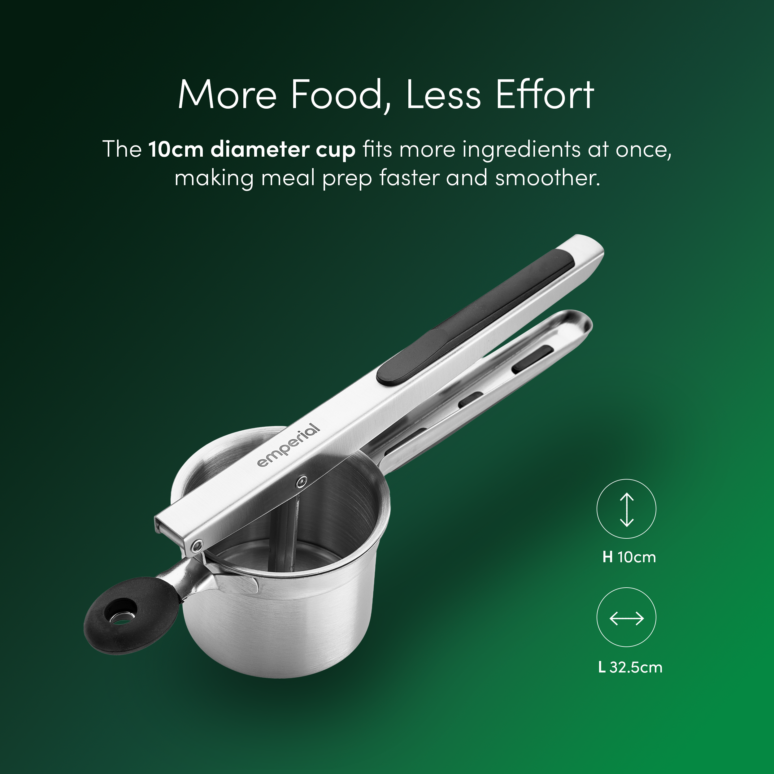 • Smooth, lump-free mash – Create restaurant-quality mashed potatoes with ease. The fine ricing plate and wide 10cm chamber produce light, fluffy mash every time, saving you time and effort in the kitchen.