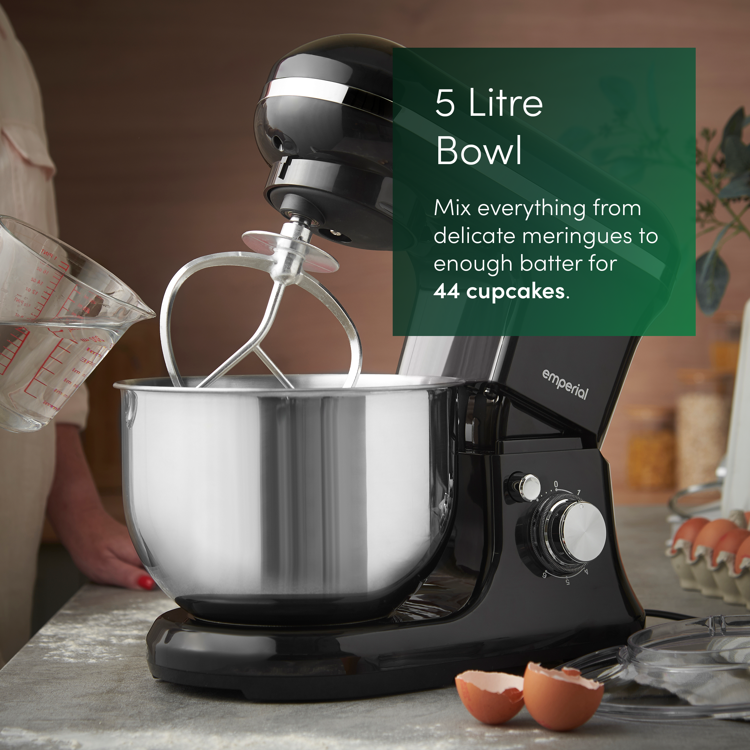 - Large 5L Stainless Steel Bowl - The spacious, dishwasher-safe 5-litre bowl is ideal for batch baking, large recipes, and everyday use. Stylish, durable, and built for convenience.