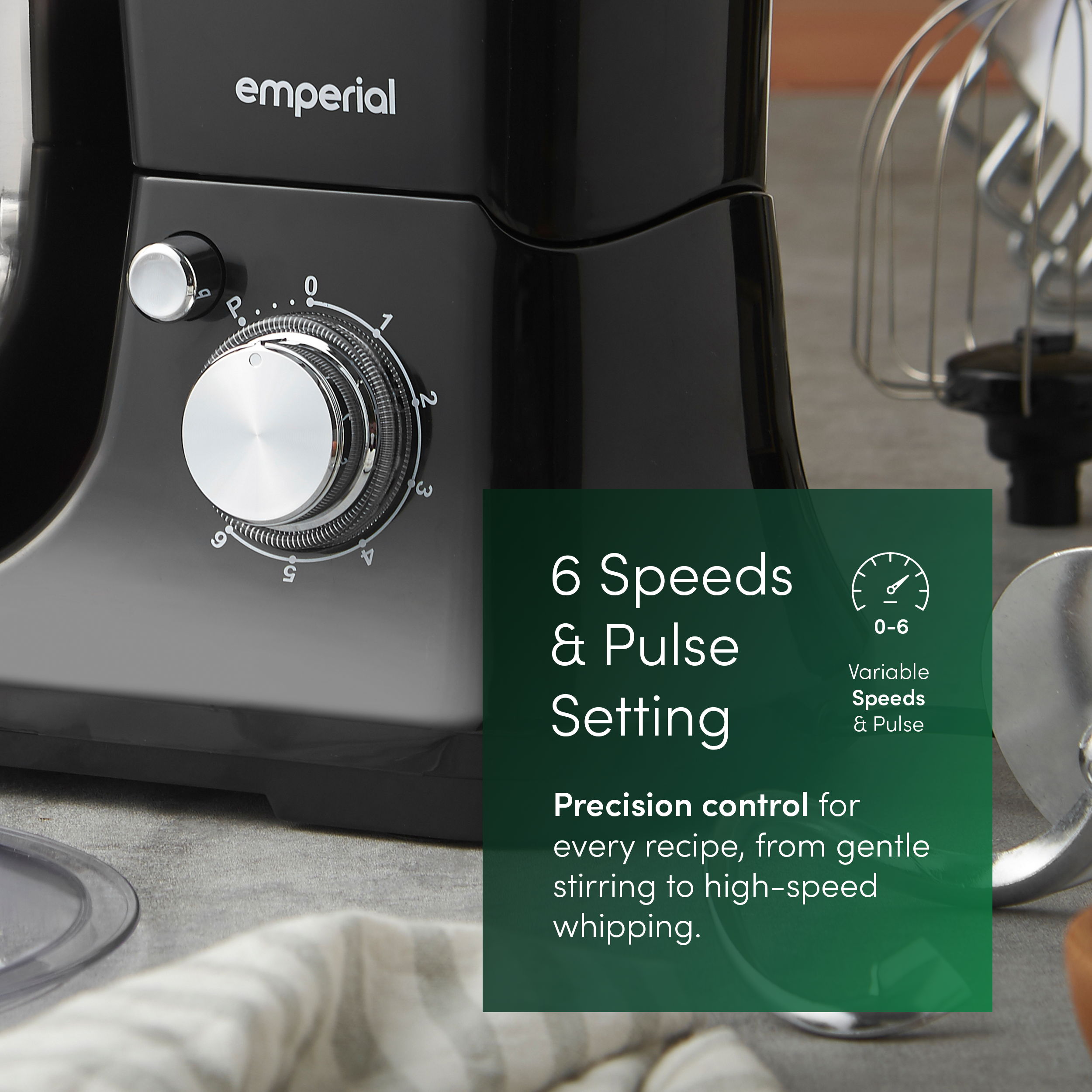 - 6 Speeds + Pulse Function - Tackle any recipe with precision control. From a slow stir to a fast whip, choose the right speed for the task. The tilt-head design and included splash guard make it easy to add ingredients mess-free.