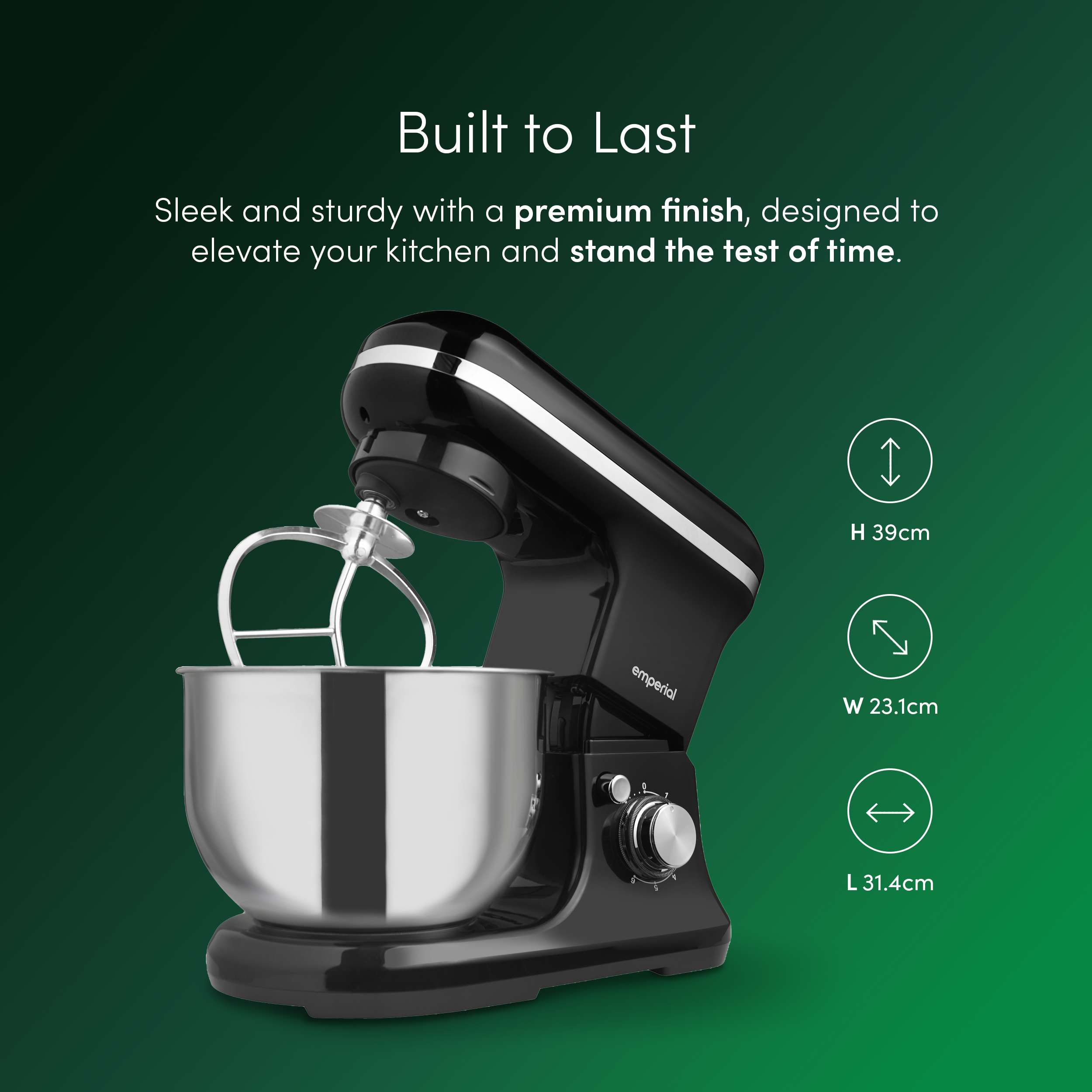 - Powerful 1200W Motor - From heavy dough to light whipped cream, the robust 1200W motor takes the hard work out of mixing and delivers smooth, reliable results every time.