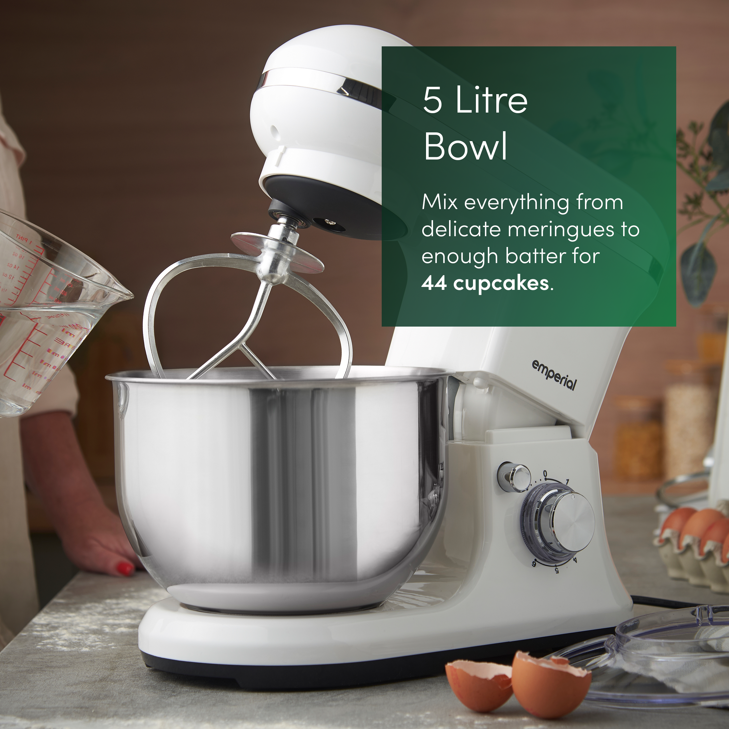 Large 5L Stainless Steel Bowl - The spacious, dishwasher-safe 5-litre bowl is ideal for batch baking, large recipes, and everyday use. Stylish, durable, and built for convenience.