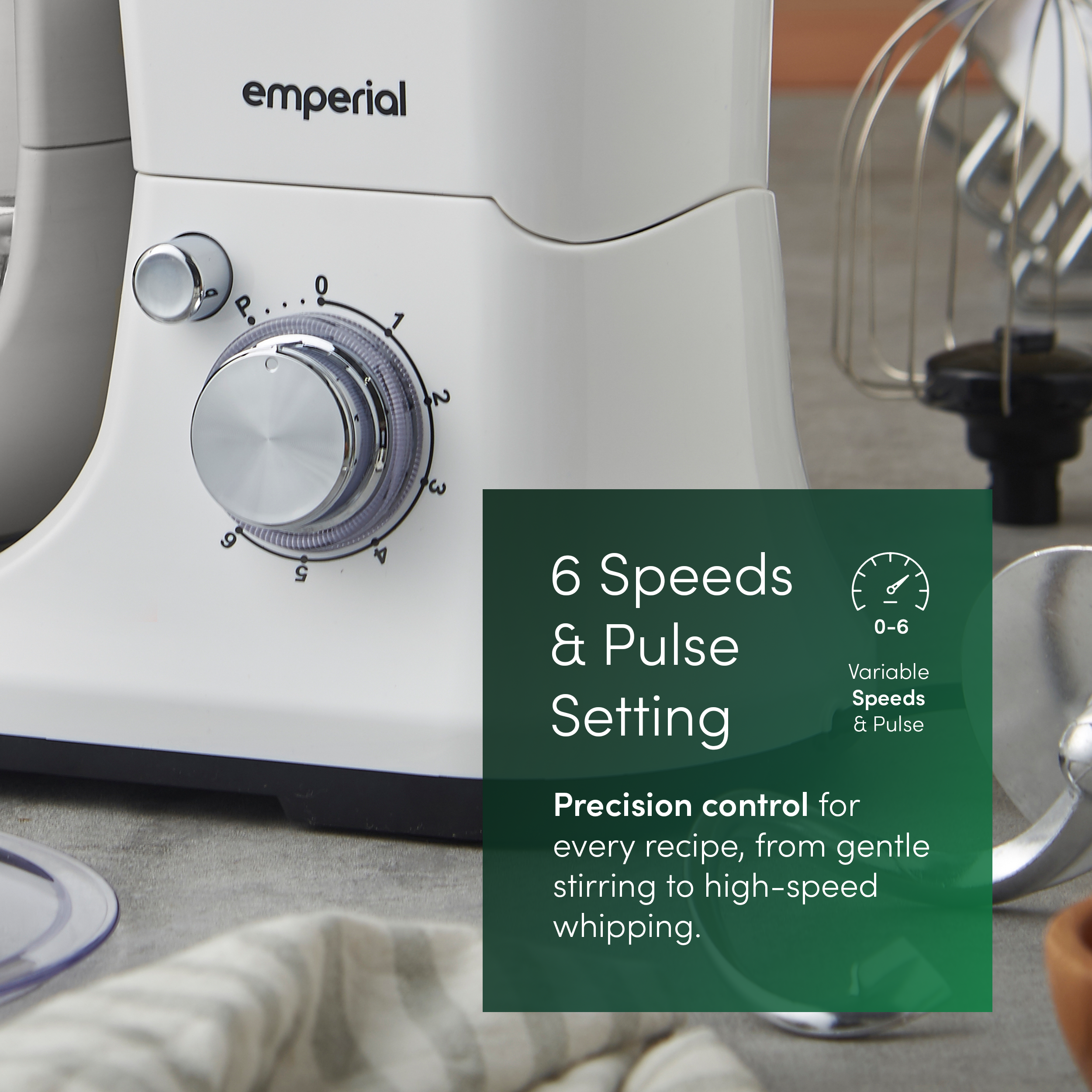 6 Speeds + Pulse Function - Tackle any recipe with precision control. From a slow stir to a fast whip, choose the right speed for the task. The tilt-head design and included splash guard make it easy to add ingredients mess-free.