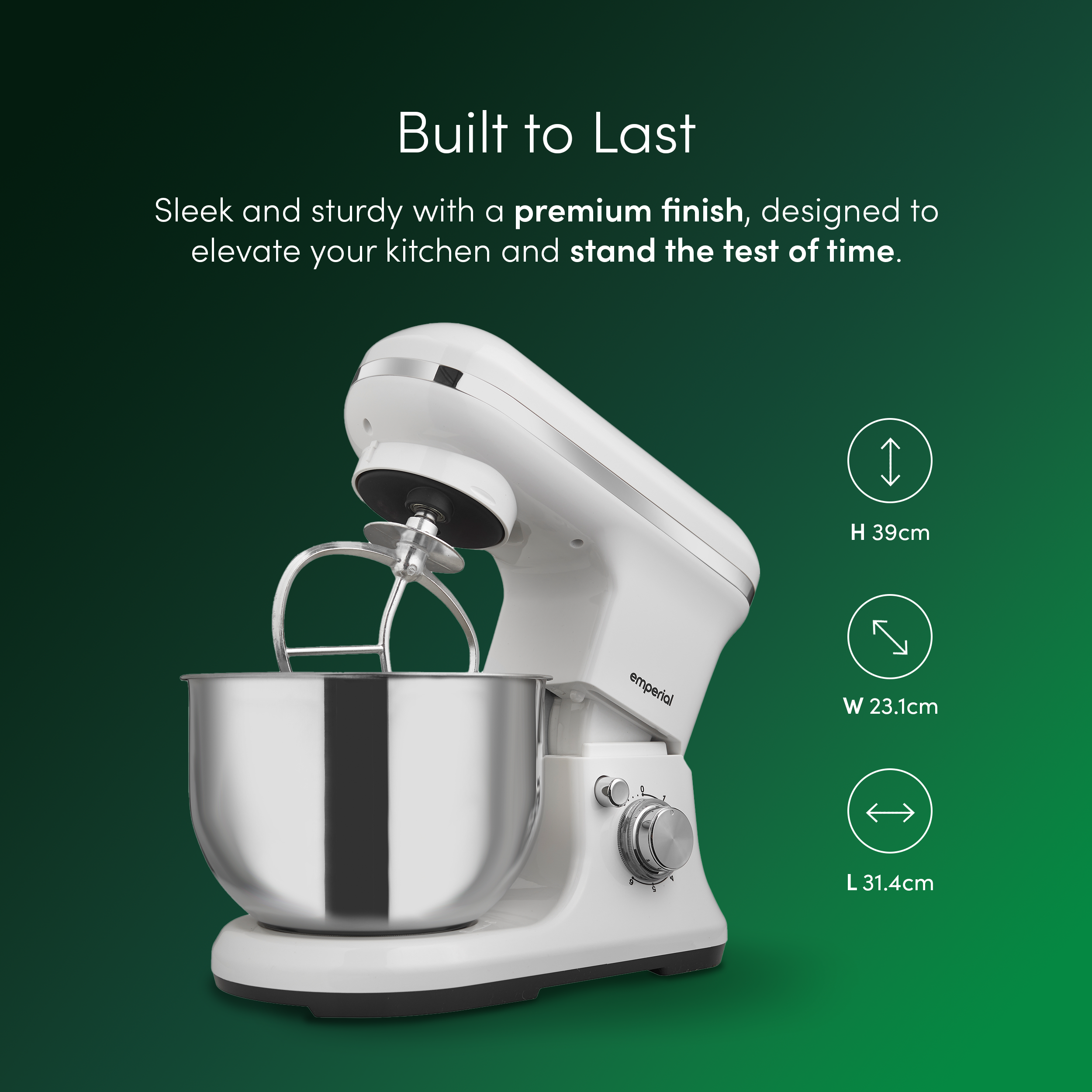 Powerful 1200W Motor - From heavy dough to light whipped cream, the robust 1200W motor takes the hard work out of mixing and delivers smooth, reliable results every time.